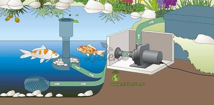 Instalacja AquaMax Dry powinna zostać dokonana poniżej lustra wody w osobnej komorze pompy. Dużą zaletą ustawienia na suchym podłożu jest niezwykle bezpieczne użytkowanie pompy, w szczególności w przypadku stawów kąpielowych. Ponadto do pompy jest łatwy dostęp w przypadku konserwacji.