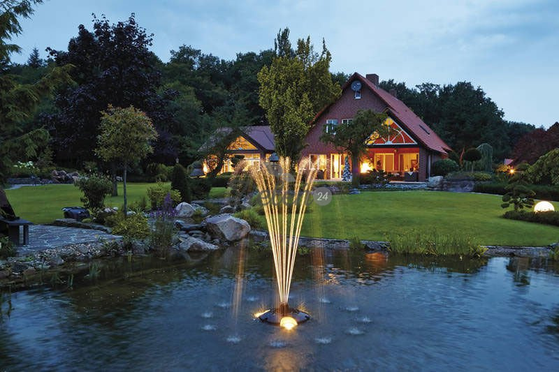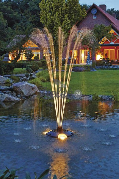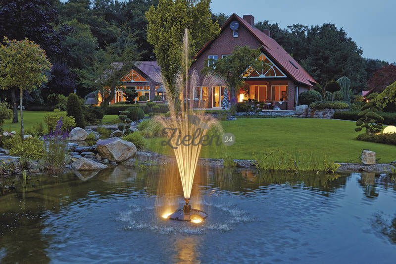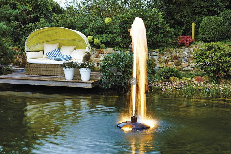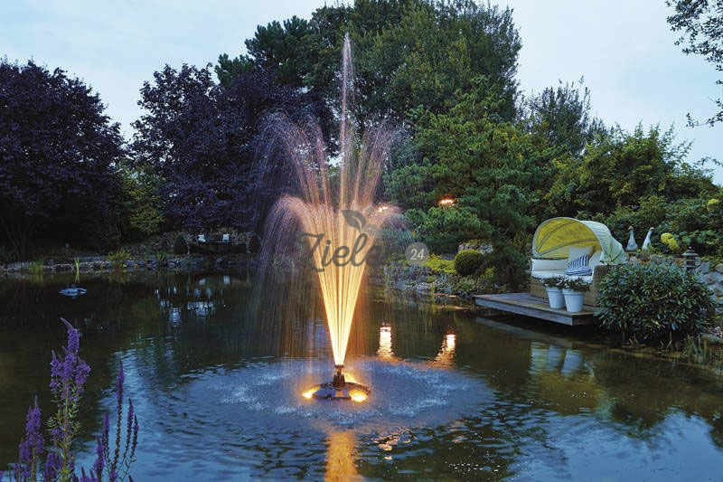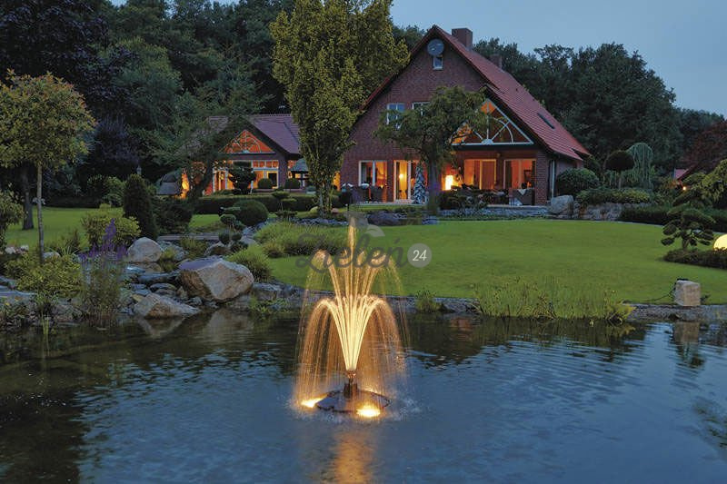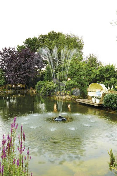 Fontanna pływająca renomowanej, niemieckiej firmy Oase. Szybka i prosta instalacja dzięki pływającemu deckowi oraz linkom mocującym fontannę do brzegu, aby ustawić ją w wybranym miejscu stawu.