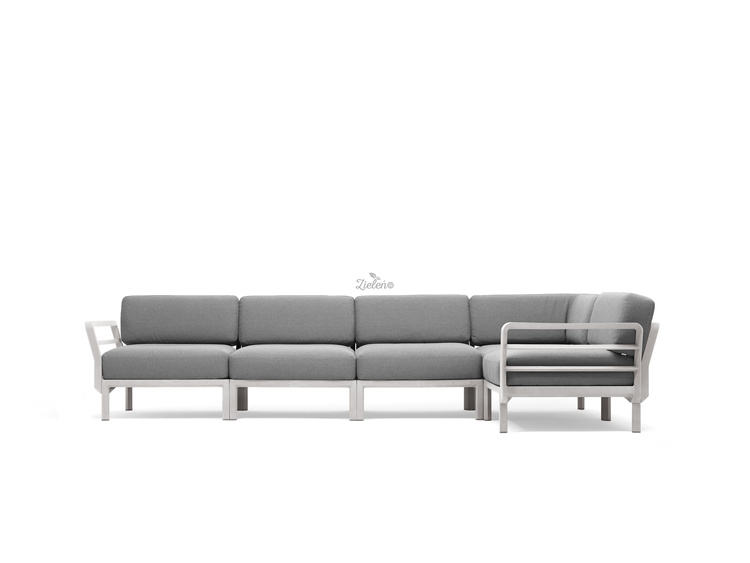 - komplet mebli włoskich do ogrodu z pięcioma siedziskami ze stelażem w kolorze Gesso i poduszkami w kolorze Lava